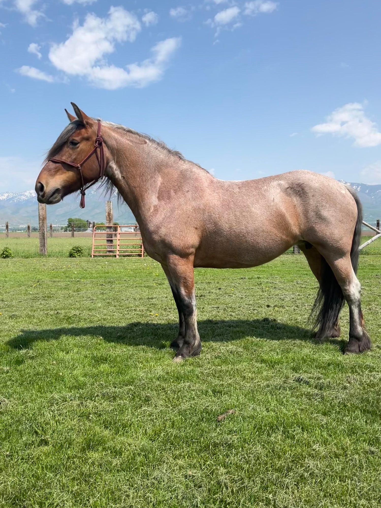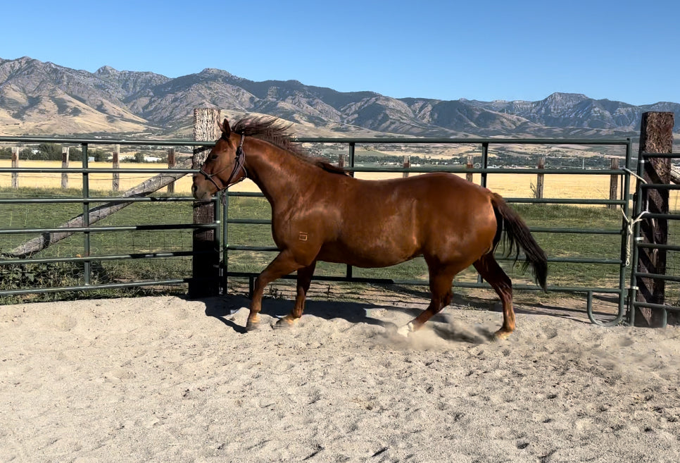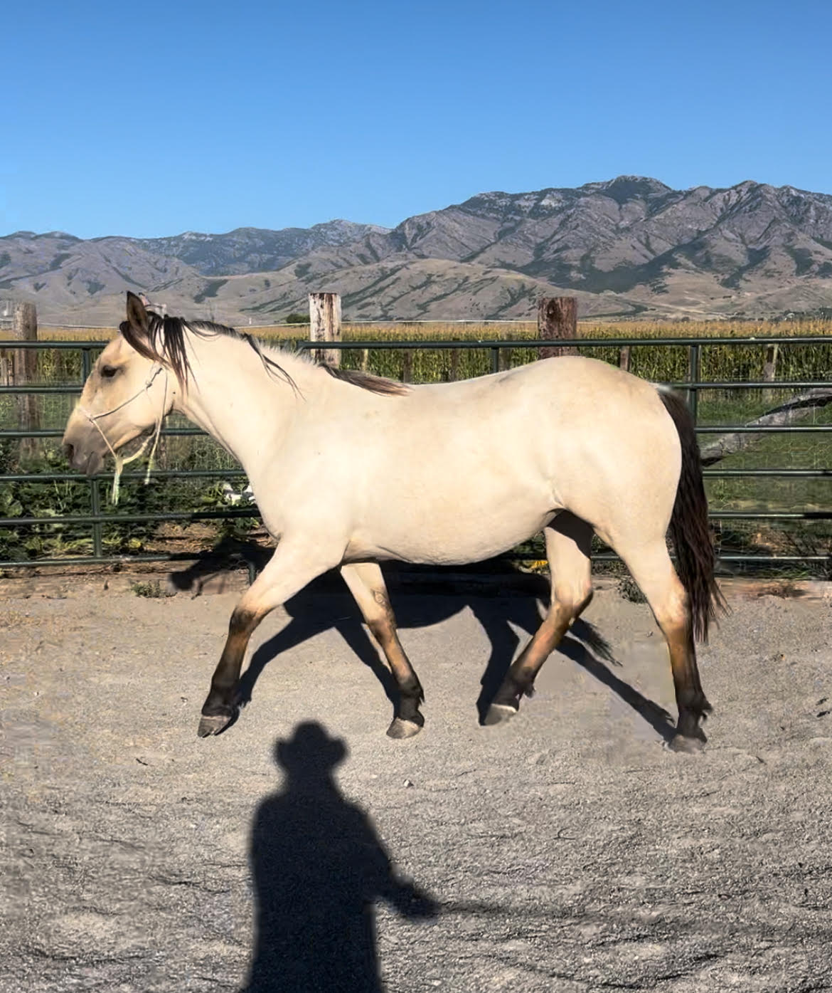 Ruby’s spunky, bold nature has given her a confidence that far surpasses her age. At only a year old, Ruby is already already taller than her mom, Rebel. She is playful, curious and verges on cheeky- brazenly exploring and teasing and chasing the older horses, dogs, chickens, and even inanimate objects. Her natural athleticism is astonishing and opens so many options with her future training.